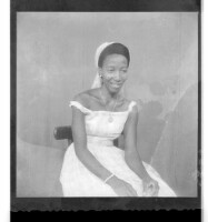 307. EAP449/2/8/307 Reference (shelfmark): EAP449/2/8/307 Title: A woman wearing a dress sitting in profile in the studio. Collection Area: Endangered Archives Programme Languages: Not applicable Date Range: 2nd half od the 20th century Extent: 1 TIFF image