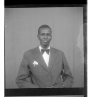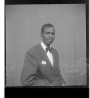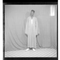 321. EAP449/2/8/321 Reference (shelfmark): EAP449/2/8/321 Title: A man wearing a boubou wearing a hat standing face-forward in the studio. Collection Area: Endangered Archives Programme Languages: Not applicable Date Range: 2nd half od the 20th century Extent: 1 TIFF image
