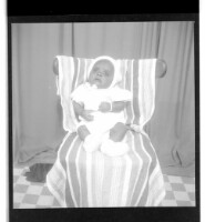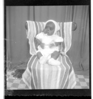 329. EAP449/2/8/329 Reference (shelfmark): EAP449/2/8/329 Title: A baby wearing shorts sitting in profile in a chair in the studio. Collection Area: Endangered Archives Programme Languages: Not applicable Date Range: 2nd half od the 20th century Extent: 1 TIFF image