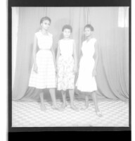 346. EAP449/2/8/346 Reference (shelfmark): EAP449/2/8/346 Title: Three women wearing dresses, two standing in profile, of whom one is wearing glasses, and one standing face-forward in the studio. Collection Area: Endangered Archives Programme Languages: Not applicable Date Range: 2nd half od the 20th century Extent: 1 TIFF image