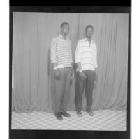 349. EAP449/2/8/349 Reference (shelfmark): EAP449/2/8/349 Title: Two men wearing shirts and pants, one standing face-forward and the other in profile in the studio. Collection Area: Endangered Archives Programme Languages: Not applicable Date Range: 2nd half od the 20th century Extent: 1 TIFF image