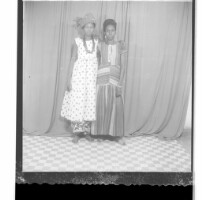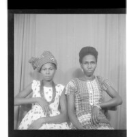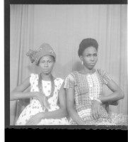 402. EAP449/2/8/402 Reference (shelfmark): EAP449/2/8/402 Title: Two women wearing dresses and pagnes, one wearing a head wrap and necklace, both standing face-forward in the studio. Collection Area: Endangered Archives Programme Languages: Not applicable Date Range: 2nd half od the 20th century Extent: 1 TIFF image