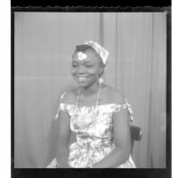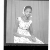 403. EAP449/2/8/403 Reference (shelfmark): EAP449/2/8/403 Title: A woman in a dress wearing a head wrap sitting face-forward in the studio. Collection Area: Endangered Archives Programme Languages: Not applicable Date Range: 2nd half od the 20th century Extent: 1 TIFF image