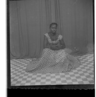 406. EAP449/2/8/406 Reference (shelfmark): EAP449/2/8/406 Title: A woman wearing a dress wearing a necklace sitting face-forward in the studio. Collection Area: Endangered Archives Programme Languages: Not applicable Date Range: 2nd half od the 20th century Extent: 1 TIFF image