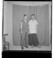 484. EAP449/2/8/484 Reference (shelfmark): EAP449/2/8/484 Title: Two men wearing shirts, one black and one white, standing face-forward in the studio. Collection Area: Endangered Archives Programme Languages: Not applicable Date Range: 2nd half od the 20th century Extent: 1 TIFF image