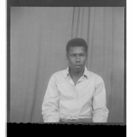 487. EAP449/2/8/487 Reference (shelfmark): EAP449/2/8/487 Title: A man wearing a shirt sitting face-forward in the studio. Collection Area: Endangered Archives Programme Languages: Not applicable Date Range: 2nd half od the 20th century Extent: 1 TIFF image