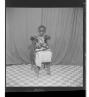 488. EAP449/2/8/488 Reference (shelfmark): EAP449/2/8/488 Title: A girl wearing a dress sitting face-forward in a chair in the studio. Collection Area: Endangered Archives Programme Languages: Not applicable Date Range: 2nd half od the 20th century Extent: 1 TIFF image