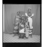 489. EAP449/2/8/489 Reference (shelfmark): EAP449/2/8/489 Title: Three women wearing dresses, one sitting face-forward in front, the other two and a girl standing face-forward in the studio. Collection Area: Endangered Archives Programme Languages: Not applicable Date Range: 2nd half od the 20th century Extent: 1 TIFF image