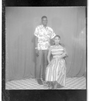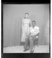 41. EAP449/2/8/41 Reference (shelfmark): EAP449/2/8/41 Title: A woman wearing a dress standing face-forward and a man wearing a shirt sitting face-forward in the studio. Collection Area: Endangered Archives Programme Languages: Not applicable Date Range: 2nd half od the 20th century Extent: 1 TIFF image