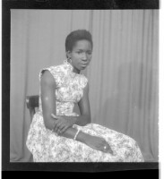 47. EAP449/2/8/47 Reference (shelfmark): EAP449/2/8/47 Title: A woman wearing a dress sitting in profile in the studio. Collection Area: Endangered Archives Programme Languages: Not applicable Date Range: 2nd half od the 20th century Extent: 1 TIFF image