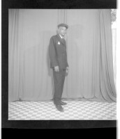 50. EAP449/2/8/50 Reference (shelfmark): EAP449/2/8/50 Title: A man wearing a suit standing in profile in the studio. Collection Area: Endangered Archives Programme Languages: Not applicable Date Range: 2nd half od the 20th century Extent: 1 TIFF image