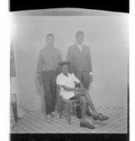508. EAP449/2/8/508 Reference (shelfmark): EAP449/2/8/508 Title: Three men wearing boubous and hats, one sitting face-forward in front and two standing face-forward behind in the studio. Collection Area: Endangered Archives Programme Languages: Not applicable Date Range: 2nd half od the 20th century Extent: 1 TIFF image