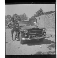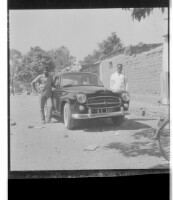 506. EAP449/2/8/506 Reference (shelfmark): EAP449/2/8/506 Title: Two men standing next to a car in front of a house. Collection Area: Endangered Archives Programme Languages: Not applicable Date Range: 2nd half od the 20th century Extent: 1 TIFF image