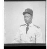 532. EAP449/2/8/532 Reference (shelfmark): EAP449/2/8/532 Title: A man wearing a military uniform and cap sitting in profile in the studio. Collection Area: Endangered Archives Programme Languages: Not applicable Date Range: 2nd half od the 20th century Extent: 1 TIFF image