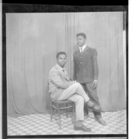 68. EAP449/2/8/68 Reference (shelfmark): EAP449/2/8/68 Title: Two men wearing jackets, one sitting in profile and the other standing in profile in the studio. Collection Area: Endangered Archives Programme Languages: Not applicable Date Range: 2nd half od the 20th century Extent: 1 TIFF image