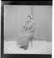 69. EAP449/2/8/69 Reference (shelfmark): EAP449/2/8/69 Title: A woman wearing a pagne sitting in profile in the studio. Collection Area: Endangered Archives Programme Languages: Not applicable Date Range: 2nd half od the 20th century Extent: 1 TIFF image