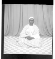 72. EAP449/2/8/72 Reference (shelfmark): EAP449/2/8/72 Title: A man wearing a large boubou sitting face-forward on the ground in the studio. Collection Area: Endangered Archives Programme Languages: Not applicable Date Range: 2nd half od the 20th century Extent: 1 TIFF image