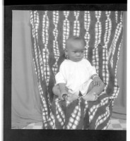 76. EAP449/2/8/76 Reference (shelfmark): EAP449/2/8/76 Title: A baby sitting on a sheet in a chair in the studio Collection Area: Endangered Archives Programme Languages: Not applicable Date Range: 2nd half od the 20th century Extent: 1 TIFF image