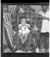 81. EAP449/2/8/81 Reference (shelfmark): EAP449/2/8/81 Title: A baby sitting on a sheet in a chair next to two children standing in the studio. Collection Area: Endangered Archives Programme Languages: Not applicable Date Range: 2nd half od the 20th century Extent: 1 TIFF image
