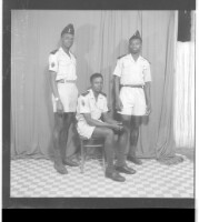 82. EAP449/2/8/82 Reference (shelfmark): EAP449/2/8/82 Title: Three men in uniform, two standing in profile and one sitting in profile in the studio. Collection Area: Endangered Archives Programme Languages: Not applicable Date Range: 2nd half od the 20th century Extent: 1 TIFF image