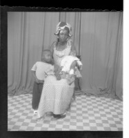 84. EAP449/2/8/84 Reference (shelfmark): EAP449/2/8/84 Title: A woman wearing a dress sitting face-forward and a child standing in profile in the studio. Collection Area: Endangered Archives Programme Languages: Not applicable Date Range: 2nd half od the 20th century Extent: 1 TIFF image