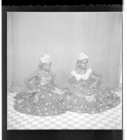 88. EAP449/2/8/88 Reference (shelfmark): EAP449/2/8/88 Title: Two women wearing dresses sitting face-forward on the ground in the studio. Collection Area: Endangered Archives Programme Languages: Not applicable Date Range: 2nd half od the 20th century Extent: 1 TIFF image