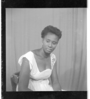 89. EAP449/2/8/89 Reference (shelfmark): EAP449/2/8/89 Title: A woman wearing a dress sitting in profile in the studio. Collection Area: Endangered Archives Programme Languages: Not applicable Date Range: 2nd half od the 20th century Extent: 1 TIFF image