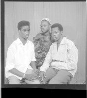 95. EAP449/2/9/95 Reference (shelfmark): EAP449/2/9/95 Title: Three people, two men wearing shirts and a woman wearing a pagne sitting in profile in the studio. Collection Area: Endangered Archives Programme Languages: Not applicable Date Range: 2nd half od the 20th century Extent: 1 TIFF image