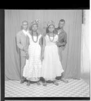 96. EAP449/2/9/96 Reference (shelfmark): EAP449/2/9/96 Title: Four people; two men, one wearing a jacket and the other wearing a shirt, and two women wearing dresses standing face-forward in the studio. Collection Area: Endangered Archives Programme Languages: Not applicable Date Range: 2nd half od the 20th century Extent: 1 TIFF image