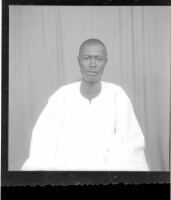 99. EAP449/2/9/99 Reference (shelfmark): EAP449/2/9/99 Title: A man wearing a boubou sitting face-forward in the studio. Collection Area: Endangered Archives Programme Languages: Not applicable Date Range: 2nd half od the 20th century Extent: 1 TIFF image