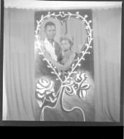 103. EAP449/2/9/103 Reference (shelfmark): EAP449/2/9/103 Title: A man wearing a shirt and a woman behind a heart-shaped frame in the studio. Collection Area: Endangered Archives Programme Languages: Not applicable Date Range: 2nd half od the 20th century Extent: 1 TIFF image
