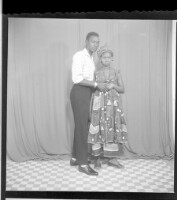 104. EAP449/2/9/104 Reference (shelfmark): EAP449/2/9/104 Title: A man wearing a shirt standing in profile and a woman wearing a dress standing face-forward in the studio. Collection Area: Endangered Archives Programme Languages: Not applicable Date Range: 2nd half od the 20th century Extent: 1 TIFF image