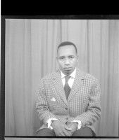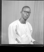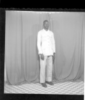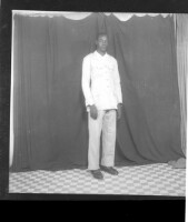106. EAP449/2/9/106 Reference (shelfmark): EAP449/2/9/106 Title: A man wearing a cosmopolitan shirt known locally as ""Trois Poches"" (Three Pockets) standing face-forward in the studio. Collection Area: Endangered Archives Programme Languages: Not applicable Date Range: 2nd half od the 20th century Extent: 1 TIFF image