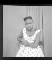 112. EAP449/2/9/112 Reference (shelfmark): EAP449/2/9/112 Title: A woman wearing a pagne sitting in profile in the studio. Collection Area: Endangered Archives Programme Languages: Not applicable Date Range: 2nd half od the 20th century Extent: 1 TIFF image