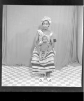 115. EAP449/2/9/115 Reference (shelfmark): EAP449/2/9/115 Title: A woman wearing a pagne with a baby sitting face-forward in the studio. Collection Area: Endangered Archives Programme Languages: Not applicable Date Range: 2nd half od the 20th century Extent: 1 TIFF image