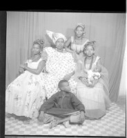 133. EAP449/2/9/133 Reference (shelfmark): EAP449/2/9/133 Title: Four women wearing large pagnes, one with a baby sitting face-forward, and a man wearing a boubou sitting in profile in front in the studio. Collection Area: Endangered Archives Programme Languages: Not applicable Date Range: 2nd half od the 20th century Extent: 1 TIFF image