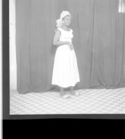135. EAP449/2/9/135 Reference (shelfmark): EAP449/2/9/135 Title: A woman wearing a dress standing in profile in the studio. Collection Area: Endangered Archives Programme Languages: Not applicable Date Range: 2nd half od the 20th century Extent: 1 TIFF image
