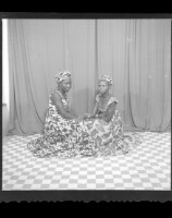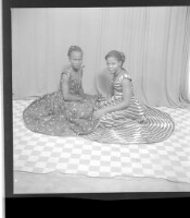 151. EAP449/2/9/151 Reference (shelfmark): EAP449/2/9/151 Title: Two women wearing large dresses sitting in profile on the ground in the studio. Collection Area: Endangered Archives Programme Languages: Not applicable Date Range: 2nd half od the 20th century Extent: 1 TIFF image