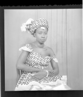 152. EAP449/2/9/152 Reference (shelfmark): EAP449/2/9/152 Title: A woman wearing a pagne sitting in profile in the studio. Collection Area: Endangered Archives Programme Languages: Not applicable Date Range: 2nd half od the 20th century Extent: 1 TIFF image