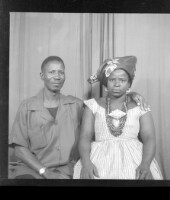 154. EAP449/2/9/154 Reference (shelfmark): EAP449/2/9/154 Title: A man wearing a shirt and woman wearing a pagne with a necklace sitting face-forward in the studio. Collection Area: Endangered Archives Programme Languages: Not applicable Date Range: 2nd half od the 20th century Extent: 1 TIFF image