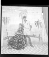 153. EAP449/2/9/153 Reference (shelfmark): EAP449/2/9/153 Title: A man wearing a shirt and a woman wearing a pagne with a necklace sitting in profile in the studio. Collection Area: Endangered Archives Programme Languages: Not applicable Date Range: 2nd half od the 20th century Extent: 1 TIFF image