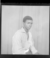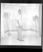 158. EAP449/2/9/158 Reference (shelfmark): EAP449/2/9/158 Title: A man wearing a shirt standing in profile in the studio. Collection Area: Endangered Archives Programme Languages: Not applicable Date Range: 2nd half od the 20th century Extent: 1 TIFF image