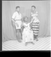 211. EAP449/2/9/211 Reference (shelfmark): EAP449/2/9/211 Title: Three people; one man wearing shorts and one woman wearing a pagne standing in profile and one woman wearing a dress sitting face-forward in the studio. Collection Area: Endangered Archives Programme Languages: Not applicable Date Range: 2nd half od the 20th century Extent: 1 TIFF image