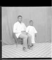 212. EAP449/2/9/212 Reference (shelfmark): EAP449/2/9/212 Title: A man wearing a shirt sitting in profile and a child wearing a boubou standing in profile in the studio. Collection Area: Endangered Archives Programme Languages: Not applicable Date Range: 2nd half od the 20th century Extent: 1 TIFF image
