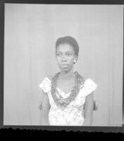 218. EAP449/2/9/218 Reference (shelfmark): EAP449/2/9/218 Title: A woman wearing a dress and necklace sitting face-forward in the studio. Collection Area: Endangered Archives Programme Languages: Not applicable Date Range: 2nd half od the 20th century Extent: 1 TIFF image