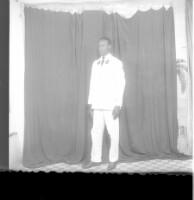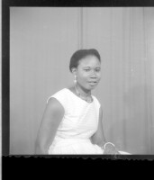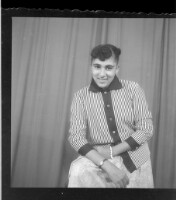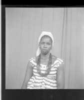 249. EAP449/2/9/249 Reference (shelfmark): EAP449/2/9/249 Title: A woman wearing a shirt and skirt standing face-forward in the studio. Collection Area: Endangered Archives Programme Languages: Not applicable Date Range: 2nd half od the 20th century Extent: 1 TIFF image