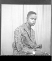 244. EAP449/2/9/244 Reference (shelfmark): EAP449/2/9/244 Title: A man wearing a boubou sitting face-forward in the studio. Collection Area: Endangered Archives Programme Languages: Not applicable Date Range: 2nd half od the 20th century Extent: 1 TIFF image