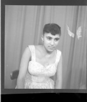 241. EAP449/2/9/241 Reference (shelfmark): EAP449/2/9/241 Title: A woman wearing a dress and necklace sitting face-forward in the studio. Collection Area: Endangered Archives Programme Languages: Not applicable Date Range: 2nd half od the 20th century Extent: 1 TIFF image