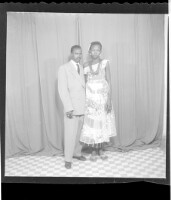 271. EAP449/2/9/271 Reference (shelfmark): EAP449/2/9/271 Title: A man wearing a suit standing in profile and a woman wearing a dress standing face-forward in the studio. Collection Area: Endangered Archives Programme Languages: Not applicable Date Range: 2nd half od the 20th century Extent: 1 TIFF image