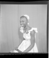 299. EAP449/2/9/299 Reference (shelfmark): EAP449/2/9/299 Title: A woman wearing a dress sitting in profile in the studio. Collection Area: Endangered Archives Programme Languages: Not applicable Date Range: 2nd half od the 20th century Extent: 1 TIFF image